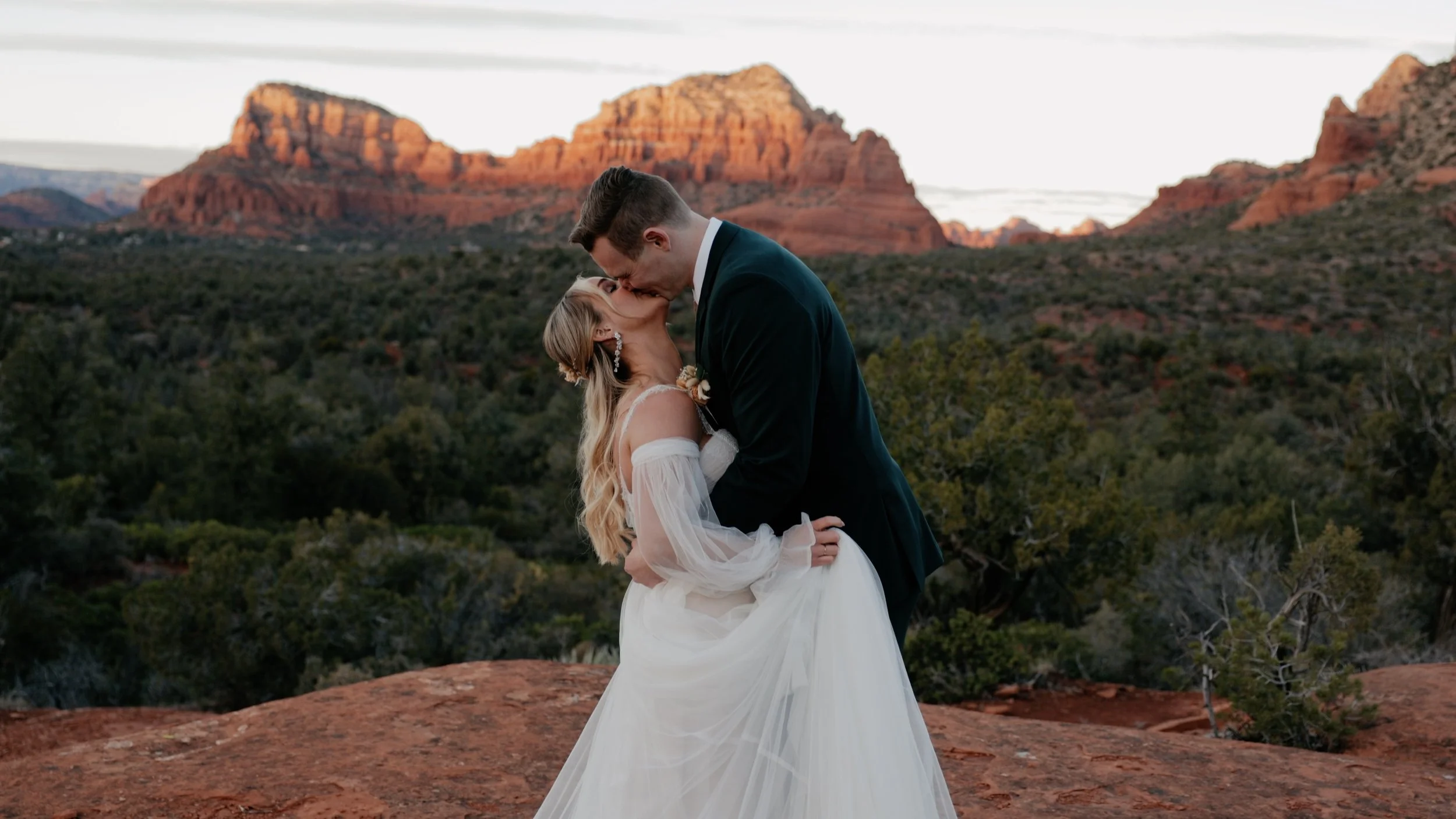It doesn’t rain often in Sedona, but when it does, Sedona turns into a moody wonderland. Were we stressed about the rain? Yes… the forecast was intense. However, we brought lots of umbrellas, and the show went on, and the most amazing thing happened. From Merry Go Round Rock, we could see it pouring in Sedona, but where we were, it was a light sprinkle. During their entire ceremony and portrait session, the storm circled around us, but never let loose over us. It was incredible and meant to be. Adventure elopements have my heart. Preview above, full film below.