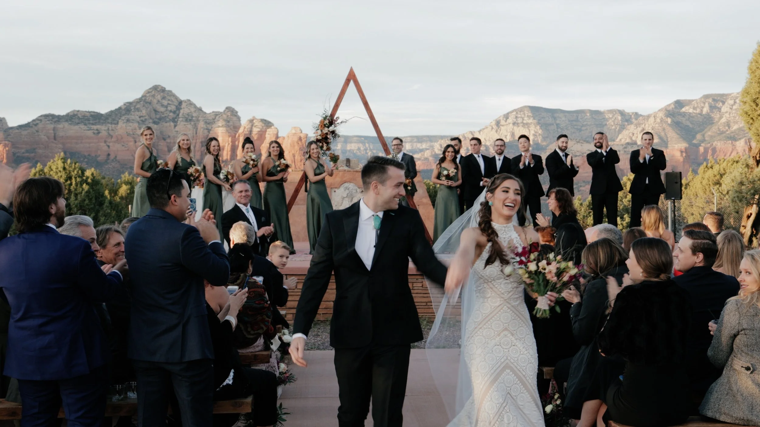 This property had so many great places to film. We did a first look with dad by the main house, and then dad drove us up a steep dirt road in a side by side to where Zack was waiting for the first look. The views of Cathedral up there took my breath away. The ceremony was righty by the lake fed by Oak Creek with massive sycamore and cottonwood trees framing the scene, and of course we had to make use of the little dock for photos and video after. Alexa and Zack also hired a professional star gazer who brought multiple telescopes so their guests could enjoy the night skies. This was a wedding where everyone had a great time and I think it was a one of kind experience no one will forget. Congrats Alexa and Zack! Full film above, preview below.